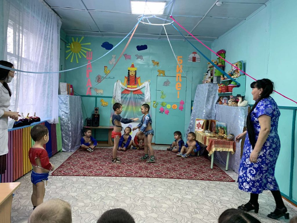 В преддверии празднования национального праздника «Шагаа» 5 февраля по плану провели национальную борьбу «Хуреш» в младшей разновозрастной и старшей разновозрастной группе